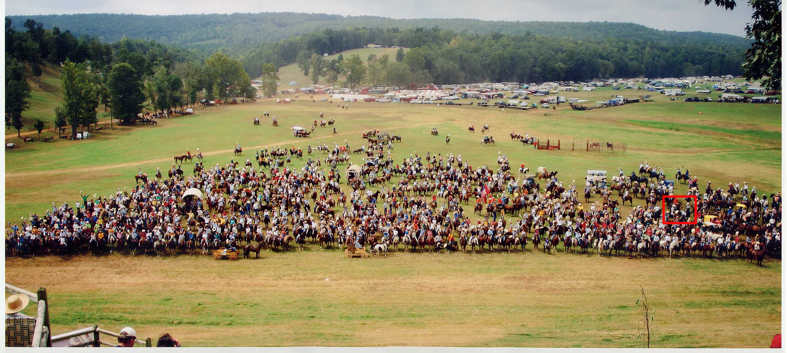 Horse Party Wednesday, September 3, 2003 7:30:06 PM EDT Well, I'm back from my trip to The National Championship Chuckwagon Races. ![]() We had a lot of fun too! That was the first time any of us had been there and I'd have to say that it's got to be THE ultimate place to go for horse people who just want to take their horses and spend a week packed with horse related events. Trail rides, chuckwagon races, mule races, general camp socializing etc. The event is held on a large ranch and although you can get around with a truck or a car if it's not too muddy, it's best if you just ride your horse or mule. There were somewhere around 5,000 of them at this year's event and approximately 20,000 people. I'll be adding some pictures after I get them off the camera, but the one up above is a picture of a huge group of us (all on horseback, mules or wagons) in the valley where most of the events are held. You can see a much larger version of it if you click on it and you'll see and me and my partners in crime, Jim and Joe in the red square. I'm the one on the far left of the square. Posted by: Marc